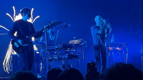 Guardandolo mentre è in scena viene da pensare che per lui sia il tema e la prima delle preoccupazioni, ovvero che tutto vada come ha pianificato e previsto, che il suo spettacolo prosegua la sua corsa lubrificata di canzone in canzone, tracciando una disegnatissima sinusoide mentale che richiama in mente quei paradossali show di migliaia di droni che volano in sincrono e disegnano geometrie e messaggi vari, spesso camp eppure coinvolgenti al limite dell’involontario. Ecco il nuovo show dei Cani è cosi, e francamente è una delle cose da non perdere della musica italiana di questo tempo, e alla fine ci si portano verso casa quei rombi e quei gemiti dei tre sintetizzatori che lavorano all’unisono, nemmeno abitassero dei box della formula uno, arrotolandosi su un formidabile battito di tamburi e preparando il terreno per la visceralità armonica di Niccolò, cantarci le dubitabili imprese di un cacciatore d’affetti e d’attenzioni. Qualcosa ancora va detto sull’atmosfera generale di questa sera di musica di fine autunno, oltre il confine mentale del Palaeur: quel che è memorabile, inatteso e sorprendente è la calma rilassata, si direbbe quasi appagata che regna tra le migliaia di convenuti ai piedi del palco dei Cani. Nemmeno fosse una pellicola distopica, una di quelle sottilmente angoscianti ambientate nella cittadina dove il tempo si è fermato, si direbbe che stasera nessuno abbia più niente da chiedere oltre lo stare là, all’imbocco della notte umida, in una calma diffusa e condivisa, quasi che l’esperienza sia stata l’arrivarci e il ritrovarsi e adesso sia sufficiente stare, finché dura la musica. Il tempo sospeso di una tribù senza particolari etichette esposte, eppure con un’identità tenace e intima, di cui Contessa è il cronista autorizzato, a quasi 40 anni e perché “crescere” è il nocciolo delle storie che canta, senza scomporsi quasi mai, se non per intonare qualche mantra purificante. Come lui oggi rappresentano Calcutta e Venerus e Bianconi, tutti collocati in questo grande mezzo tranquillo, dove la consapevolezza dei limiti c’è, ma in fondo è elaborata. Qui non si farà la storia e di rivoluzione nessuno parla più. Ma si è molto più vivi del previsto, perché ci si riconosce e si conosce un modo di stare insieme senza dar retta alle pubblicità. Niccolò li chiama gli ultimi romantici, a guardarli sono più del previsto e si sono dati placido raduno qua stasera. Indubbiamente non c’è che da dargli ragione.