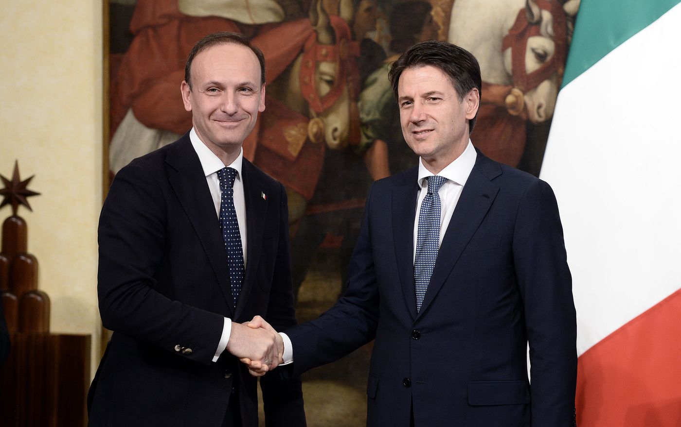 Guglielmo Picchi con il presidente del Consiglio Giuseppe Conte (foto LaPresse)