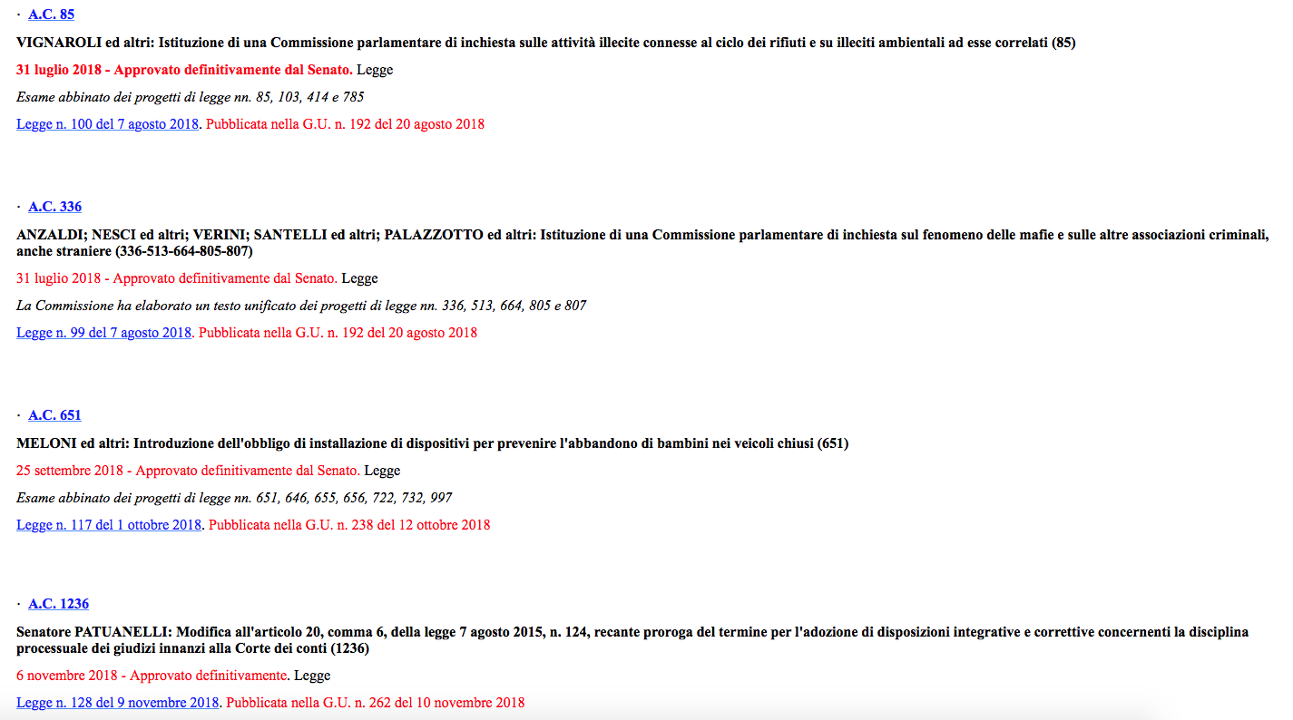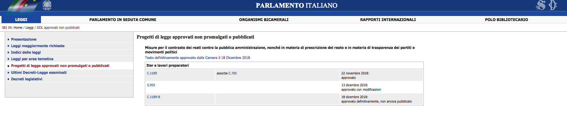 Peccato che, come testimonia il sito ufficiale del Parlamento, lo Spazzacorrotti nonostante i festeggiamenti e dopo tre settimane (22 giorni per la precisione) non sia ancora stato promulgato. Del disegno di legge che introduce nell’ordinamento italiano la figura dell’“agente provocatore” e che prevede il congelamento della prescrizione dopo il primo grado di giudizio, si sono praticamente perse le tracce. Nessuna firma del Quirinale, ergo nessuna pubblicazione in Gazzetta Ufficiale. Cosa sarà mai successo? Forse è solo un problema di ferie. Le tre settimane, infatti, sono coincise con le vacanze di Natale e Capodanno. Forse, come spiegava Ermes Antonucci sul Foglio, il Colle ha qualche dubbio sui possibili profili di incostituzionalità di alcune misure contenute nel testo. Per fare un confronto, tralasciando le proposte di legge di conversione dei decreti e quelle di ratifica dei trattati (che avendo una scadenza sono subito pubblicate in Gazzetta dopo l'approvazione finale) gli altri disegni di legge approvati fino a ora dal Parlamento (vedi elenco sotto), in media, sono stati pubblicati dopo circa 15 giorni dal voto definitivo.
