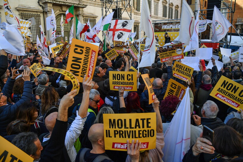 "Stop privilegi". "Basta con la casta". "Giù le mani da Bonafede". "Niente alleanze con il Pd nei territori".