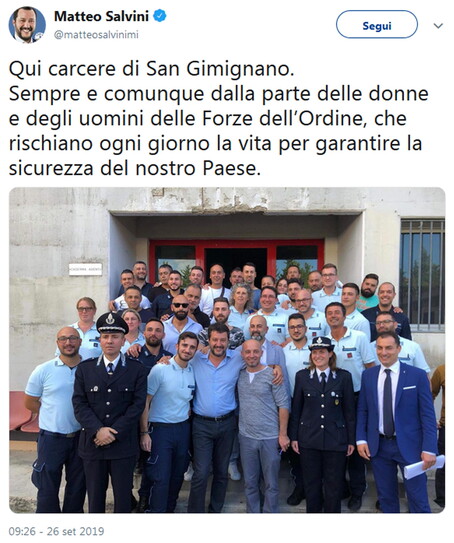 "Tra guardie e ladri io sto sempre dalla parte delle guardie", disse Salvini, secondo cui gli agenti erano stati condannati ancor prima del processo: "Gli uomini e le donne in divisa di polizia penitenziaria non meritano di esser trattati come delinquenti, assassini o torturatori". Adesso però il processo c'è stato.