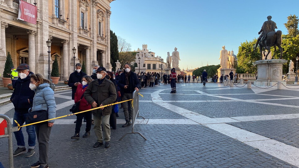 Non c’è solo la fila, interminabile, che scende tutta la lunga scala della Protomoteca, gira a sinistra e poi tutto intorno a piazza del Campidoglio. Ci sono anche così tanti fiori e corone commemorative che diventa quasi difficile entrare nella sala che ospita il feretro di David Sassoli. Accanto alla grande foto che lo raffigura sorridente ci sono le corone di presidenza della Repubblica, della Camera, del Senato. Le altre sono stipate fuori a colorare il corridoio. Arrivano da tutti i gruppi del Parlamento europeo, dall’executive board della Bce, persino dalla speaker della camera dei rappresentanti americana Nancy Pelosi.