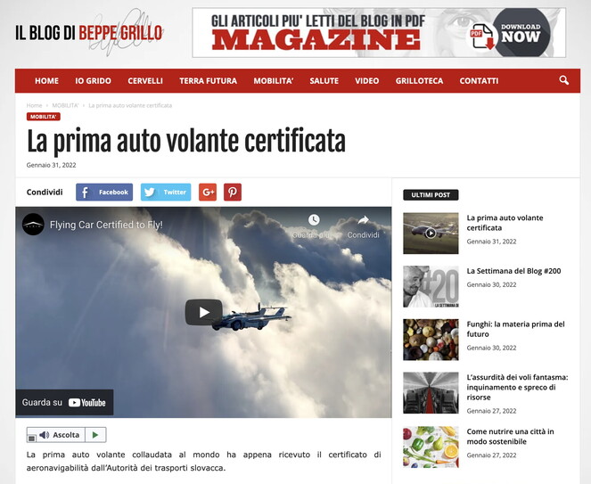 E invece? Beh, il comico non pare essere troppo interessato ai destini del Movimento. Almeno a giudicare dal fatto che questa mattina, nell'immediato post sbornia quirinalizia, è tornato a pubblicare contenuti su internet dopo l'endorsement alla Belloni (candidatura poi bruciata nel giro di un paio d'ore). Una riflessione sull'esito del Colle? Non proprio. Le attenzioni sono tutte rivolte alla "prima auto volante collaudata al mondo" che "ha appena ricevuto il certificato di aeronavigabilità dall’Autorità dei trasporti slovacca". Con tanto di video del decollo e dell'atterraggio e una certa malcelata eccitazione per la notizia. Ora, è vero che oramai Grillo ha nel M5s un ruolo ben poco operativo, anzi per lo più esterno. Ma che mentre si sta consumando una guerra tra bande grilline lui rivolga il proprio interesse alle decisioni emanate dall'autorità dei trasporti slovacca, è piuttosto sintomatico dello stato del Movimento cinque stelle.