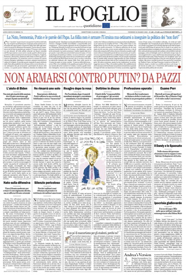 Al centro del confronto le prime pagine dei due giornali di oggi. Da una parte quello di Marco Tarquinio, che titola "La folle corsa alle armi", dall'altra quello di Claudio Cerasa, "Non armarsi contro Putin? Da pazzi".