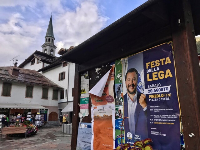 Salvini tra le montagne del Trentino, tra polenta e fresbee. A festeggiarlo però ci sono solo i militanti