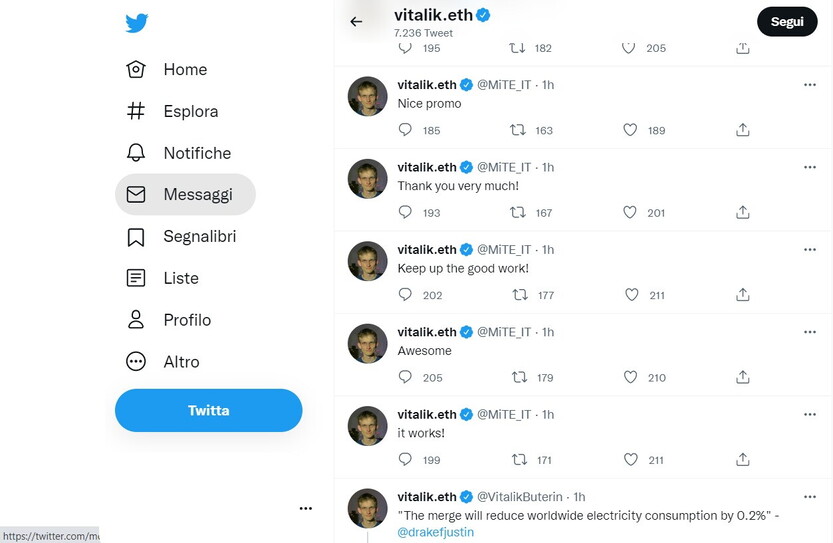 Ministero della Transizione ecologica o Vitalik Buterin? Da questa mattina il dicastero guidato da Roberto Cingolani sembra essere sotto attacco hacker del programmatore russo e fondatore della criptovaluta Ethereum. Poco dopo le 9, nell'account del Mite è comparsa una nuova foto profilo, un nuovo nome utente, dei like ai post di Elon Musk e soprattutto una sfilza di tweet scritti in inglese che sponsorizzano la nota valuta digitale.