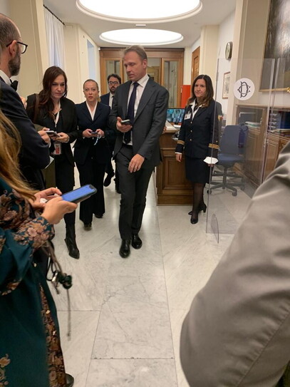 Dopo essere stato eletto presidente del Senato, La Russa si è recato al Quirinale dove è stato ricevuto dal presidente della Republica Mattarella. Subito dopo l'esponente di Fratelli d'Italia si è recato in via della Scrofa, sede del partito.