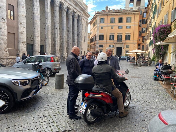 La vicenda si fa sempre più commedia perché per caso il leader di Azione passa in scooter a piazza di Pietra in motorino e si ferma a parlare con Daniele Leodori e l’eurodeputato del Pd (ed ex vicegovernatore) Massimiliano Smeriglio. “Abbiamo trovato un accordo: candidiamo Smeriglio, è comunista però è bravo”, scherza Calenda. Poi seriamente: “Conte ha rotto l'alleanza. Ora che volevo fa’? Il candidato è loro. Ormai su D’Amato direi che è l’ora di chiudere e smettere di inseguire i cinque stelle. Anche sulla Lombardia abbiamo chiesto un tavolo: il Pd si può convincere anche su Moratti, anche se le due cose non sono collegate”. Calenda esclude anche eventuali primarie. “Su cosa? C'è un solo candidato”. In realtà ci sono anche Leodori e la consigliera della sinistra civica Marta Bonafoni. “Facessero un bel ticket Bonafoni-D’Amato allora”, dice il leader del Terzo Polo. Poco più in là, seduta a un bar, c’è proprio Marta Bonafoni. Parla fitto fitto con le deputate del Pd Elly Schlein e Cecilia D’Elia.