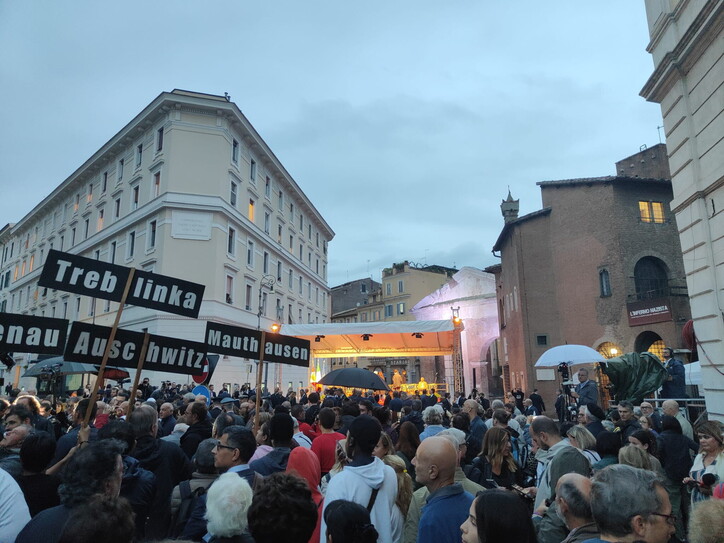 Alle 18 in piazza del Campidoglio centinaia, forse migliaia di persone si sono radunate per la marcia. Ragazzi reggono cartelli con il nome dei campi di sterminio: Treblinka, Sobiror, Gross-Rosen, Mathausen, Buchenwald. “Le testimonianze di chi è scomparso sono un immenso valore. La guerra è sempre un terreno di coltura di grandi atrocità” dice il fondatore della comunità di Sant’Egidio Andrea Riccardi, che insieme alla Comunità ebraica di Roma organizza la commemorazione da trent’anni. Ci sono un po’ tutti i partiti. L’ex ministro Roberto Speranza saluta Carlo Calenda (“no Roberto, sulla Sanità in manovra non c’è niente, ne ho parlato anche con Ricciardi”). Dice anche: “E’ importante esserci”. Come lo dicono dal Pd (c’è il sindaco Gualtieri, ma pure Walter Veltroni avvolto in un trench color panna). Ci si mette in moto uno accanto all’altro. “E chissenefrega della pioggia”, urlano nel mucchio. “Quando si tratta di queste battaglie noi ci siamo sempre”, dicono da Italia viva. Solo i Cinque stelle non si vedono. Il corteo finirà davanti al portico mentre dagli altoparlanti suonano “la Suite from Anna Frank’s Holocaust” di Mark Leggett. Sul palco si vedono anche il vicepremier Antonio Tajani, in rappresentanza del governo, e il presidente della Camera Lorenzo Fontana. “Questi sono giorni drammatici, dopo il terribile attacco di Hamas a Israele. Ripensando a cosa accadde ottant’anni fa qui a Roma è difficile non restare atterriti davanti a cosa è avvenuto pochi giorni fa. L’inferno è ancora tra noi”, dice prendendo la parola Gualtieri. Seguito dal rabbino capo di Roma Riccardo Di Segni secondo cui “quello che è successo nove giorni fa in Israele ha ricordato stragi antiche e recenti con donne trascinate per i capelli e bambini uccisi. L’attacco agli ebrei in quanto tali, perché di questo si è trattato, è un attacco ai fondamenti della società civile”. E il presidente Fadlun: “Pensavamo che nessuno sarebbe più entrato nelle nostre case, avrebbe ucciso più i nostri bambini. E invece...”. Al termine della commemorazione tutti gli invitati si dirigono verso il capo dello stato Mattarella, lo ringraziano per la presenza, gli stringono la mano, mentre in sottofondo c’è la colonna sonora di “Schindler’s list”. Poche ore prima l’unica voce che spezzava il silenzio del Ghetto era quella di Calcutta, il cantautore, che dal ristorante Sheva intonava “oh mondo cane, tu fatti gli affari tuoi”.