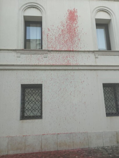 Imbrattata di rosso la sede di Confindustria Alto Adriatico con la bandiera di Israele