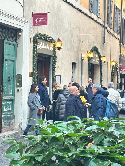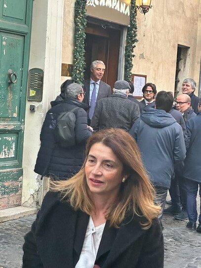 Per chi suona la campana? Ma che domande per Giorgia Meloni. I parlamentari, i ministri di Fratelli d'Italia e tutto lo staff di Palazzo Chigi sono riuniti in questo momento al ristorante la Campana, di proprietà del deputato Paolo Trancassini, per lo scambio di auguri. Alla spicciolata stanno entrando tutti, dalla ministra Daniela Santanché passando per i capigruppo Malan e Foti. E non può mancare Patrizia Scurti, l'ombra della premier che si trova a casa alle prese con l'influenza. Spunta anche Tommaso Longobardi, social media manager e capo della bestiolina meloniana.