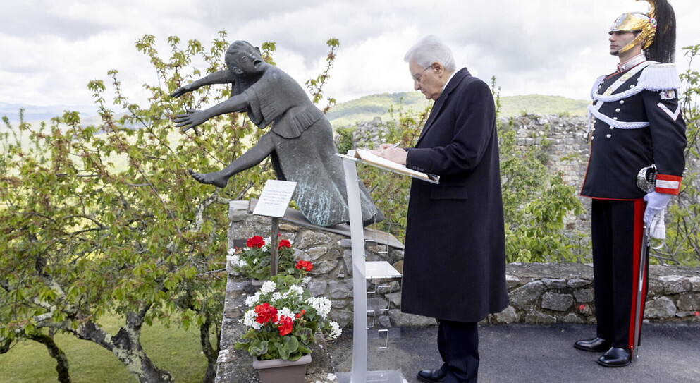Dopo la consueta commemorazione nella capitale, Mattarella si è recato a Civitella di Val Chiana, in provincia di Arezzo, dove nel 1944 i nazisti uccisero 244 civili, tra cui molte donne e bambini. "Non c'è alcuna parte del suolo italiano – con la sola eccezione della Sardegna – che non abbia patito la violenza nazifascista contro i civili e che non abbia pianto sulle spoglie dei propri concittadini brutalmente assassinati", ha detto Mattarella durante la celebrazione in Toscana.