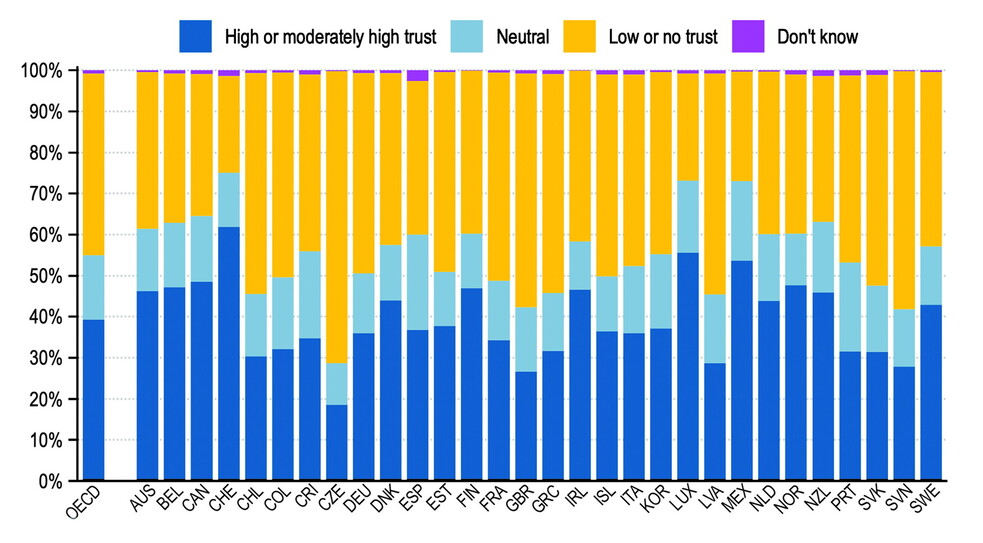 Il secondo rapporto Ocse sulla fiducia nelle istituzioni pubbliche (“Oecd Survey on Drivers of Trust in Public Institutions - 2024 Results. Building Trust in a Complex Policy Environment”) è fondato sui dati raccolti alla fine del 2023, che possono essere comparati con quelli della precedente indagine, svolta nel 2021.