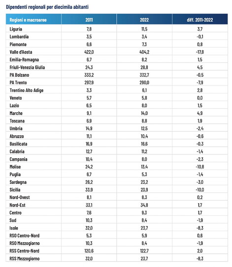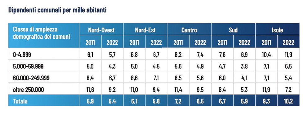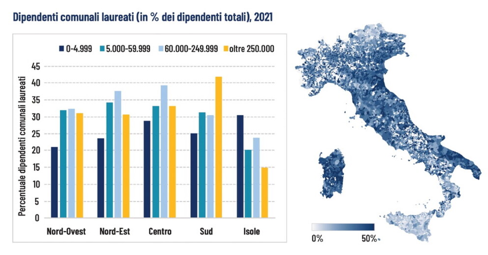 Un’analisi dei dati sembra condurre alla conclusione che, più che un divario Nord- Sud, vi siano divari interni alle zone geografiche. Colpiscono, in particolare, quello relativo alla dotazione di personale dei comuni per classi di ampiezza demografica e quello che riguarda i laureati tra Mezzogiorno continentale e isole. Per giungere a una conclusione sicura, peraltro, bisognerebbe valutare non solo il rapporto con la popolazione ma, come osservato da Gianfranco Cerea negli studi per la determinazione dei livelli essenziali delle prestazioni, la struttura orografica e anche altri fattori.