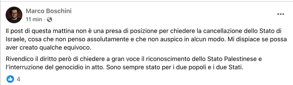 Dopo l’articolo del Foglio, Boschini si è scusato.