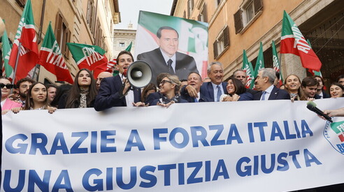 "Giustizia giusta per l'Italia" è il coro scandito lungo Corsia Agonale, la stretta via che collega Palazzo Madama e Piazza Navona, dove i parlamentari forzisti hanno organizzato un flash-mob subito dopo l'approvazione della riforma sulla giustizia per festeggiare la vittoria. Il testo è stato approvato in via definitiva con 112 voti favorevoli, 59 contrari e 9 astenuti, e FI è scesa in piazza sventolando le bandiere di partito e mostrando una grande foto di Silvio Berlusconi e un cartellone con la scritta "Grazie a Forza Italia una giustizia giusta".