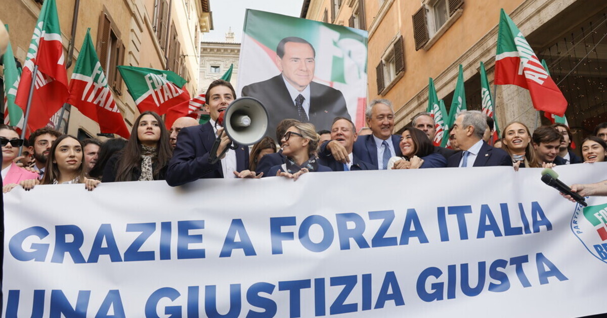 "Giustizia giusta per l'Italia". La festa di FI dopo l'approvazione del ddl Nordio. In piazza foto del Cav. e di Zuccheddu