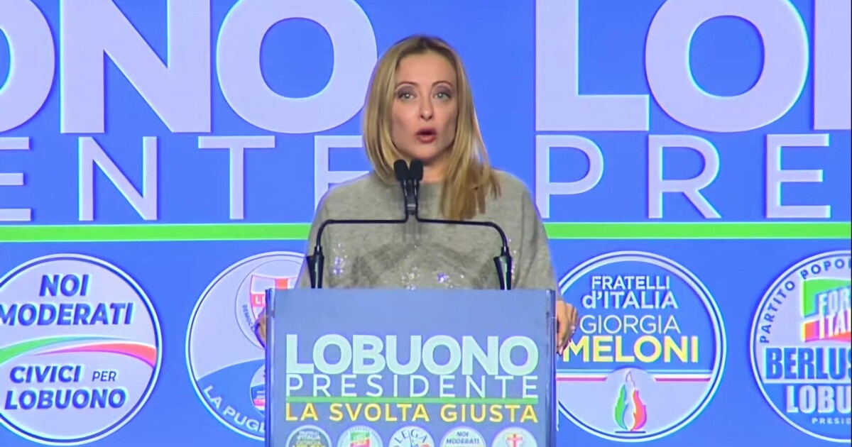 "Questa sala e questo entusiasmo sono la più bella risposta a chi sta continuando a dire che la Puglia non può e non vuole cambiare", ha detto la premier Meloni accolta con una standing ovation del pubblico. "Non esistono risultati già scritti. Ricordo quando dicevamo che FdI non poteva raggiungere il 5 per cento dei consensi. Ricordo quando dicevano che non saremo mai arrivati al governo della nazione, ora siamo il terzo governo più longevo della storia repubblicana". Continua Meloni: "Eravamo la pecora nera d'Europa e oggi siamo la nazione che può indicare la rotta alle altre. Non è stato il caso né la fortuna". "Noi puntiamo a vincere perché non abbiamo paura di nessuno. Siamo qui uniti da trent'anni a questa parte. Siamo uniti come ci avrebbe voluto vedere Pinuccio Tatarella- storico esponente del Msi e di An - a 90 anni dalla nascita, un uomo del popolo innamorato della sua terra, intelligente e sorridente". "Mettetevi l'anima in pace - dice la premier - il nostro governo arriverà a fine legislatura. La Meloni a casa la possono mandare solo gli italiani: si chiama democrazia".