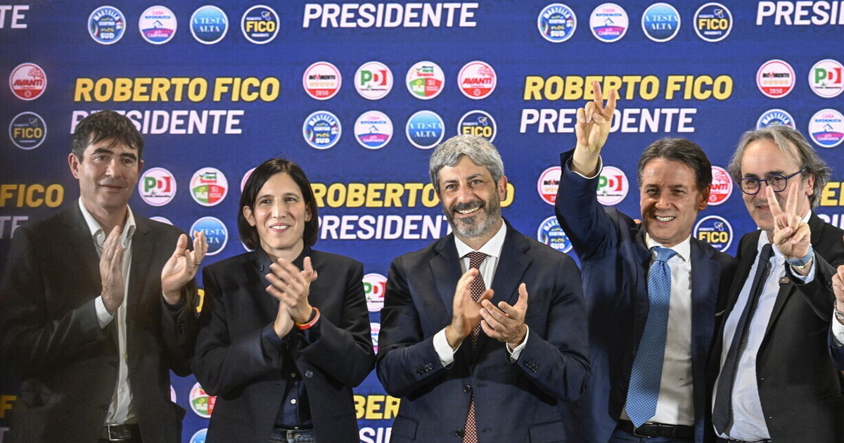 Ha ringraziato i campani per "la scelta così netta". E ha già premesso che "la coalizione da domani è al lavoro per governare al meglio". Ma almeno per questa sera Roberto Fico si gode gli elogi e i festeggiamenti del campo largo, con i leader accorsi a Napoli per incoronare il nuovo presidente della Regione (hanno preferito lui all'altro presidente vincente di questa tornata: il pugliese Antonio Decaro). Il conteggio delle schede procede ancora, si cercherà di capire chi ha fatto meglio, chi peggio, se il M5s ha tenuto, se è nelle liste civiche legate all'ex governatore Vincenzo De Luca da ricercare "la spinta" al successo. Quel che conta, però, è che ognuno possa rivendicare un pezzo del successo. Ché, come ha detto Giuseppe Conte, "per il M5s è una doppietta storica: due governatori di regione in due anni, quando prima non ne avevamo avuto mai nessuno. Questo ci dà ancora più forza e coraggio: lotteremo con le unghie e con i denti per cambiare le cose nel nostro paese". Ma anche Elly Schlein ha di che rallegrarsi. Così, quando ancora si è ai primi exit poll, la segretaria decide di "scendere" a Napoli per scattare la "foto della vittoria". Lei, Conte, Fratoianni e Bonelli si intrattengono per oltre mezz'ora nel retropalco del comitato elettorale di Fico. Poi il neo presidente sale e ringrazia proprio loro, oltre che il presidente uscente Vincenzo De Luca con cui c'è stato "un confronto costruttivo".
