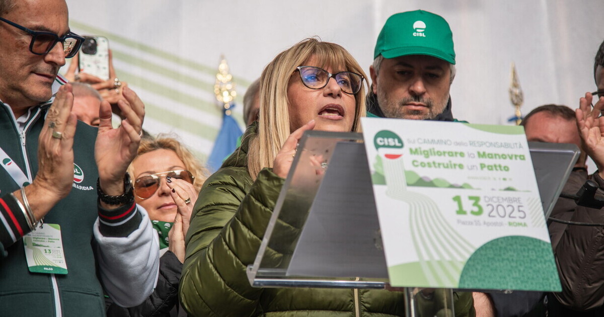 Ma partiamo proprio dalla manifestazione di sabato: a Roma avete parlato di “Patto di responsabilità” per il paese, portando in piazza le vostre proposte per migliorare la legge di Bilancio. Qual è il messaggio e quali sono le proposte lanciate da lì? “La nostra piazza è stata l’espressione concreta di un progetto: chiediamo al governo e alle altre parti sociali una grande alleanza sulle scelte e sulle riforme di cui ha bisogno il paese per crescere di più ma in maniera equa, per aumentare i salari reali e la produttività, per investire sui fattori veri di sviluppo, anche in vista della fine degli effetti positivi del Pnrr nel 2026”, dice la segretaria Fumarola. “Abbiamo ribadito ciò che va cambiato nella legge di Bilancio, che per noi deve rappresentare il primo tassello di un accordo tra governo e parti sociali su lavoro, welfare, crescita, coesione, partecipazione. Questa è la sfida che abbiamo lanciato a tutti i nostri interlocutori politici e sociali”. E’ un modello di sindacalismo senza demagogia che si occupa di lavoro in maniera diversa rispetto a chi, il giorno prima, venerdì, come la Cgil di Maurizio Landini, è sceso ancora in piazza organizzando l’ennesimo sciopero generale contro la manovra (peraltro con adesioni bassissime in alcuni comparti come il pubblico)? “La nostra cifra è la responsabilità e il metodo del confronto. Una impostazione che respinge ogni antagonismo ideologico e rifiuta ogni populismo sindacale, e che invece vuole rafforzare il ruolo riformista della rappresentanza sociale nel governo di una società complessa come quella italiana”, risponde Fumarola, che da quando è segretaria non ha mai rinunciato a marcare le differenze della sua organizzazione con quella di Landini. “Non si tratta di rinunciare al conflitto, che rimane il sale della democrazia, ma di privilegiare strumenti che costruiscano soluzioni concrete. La Cisl vuole parlare a tutti con proposte verificabili, non con vecchi e irrealistici slogan. E’ la scelta di voler cambiare le condizioni del paese in un clima di corresponsabilità, non accontentandosi di soffiare sul fuoco del malcontento”, aggiunge Fumarola.