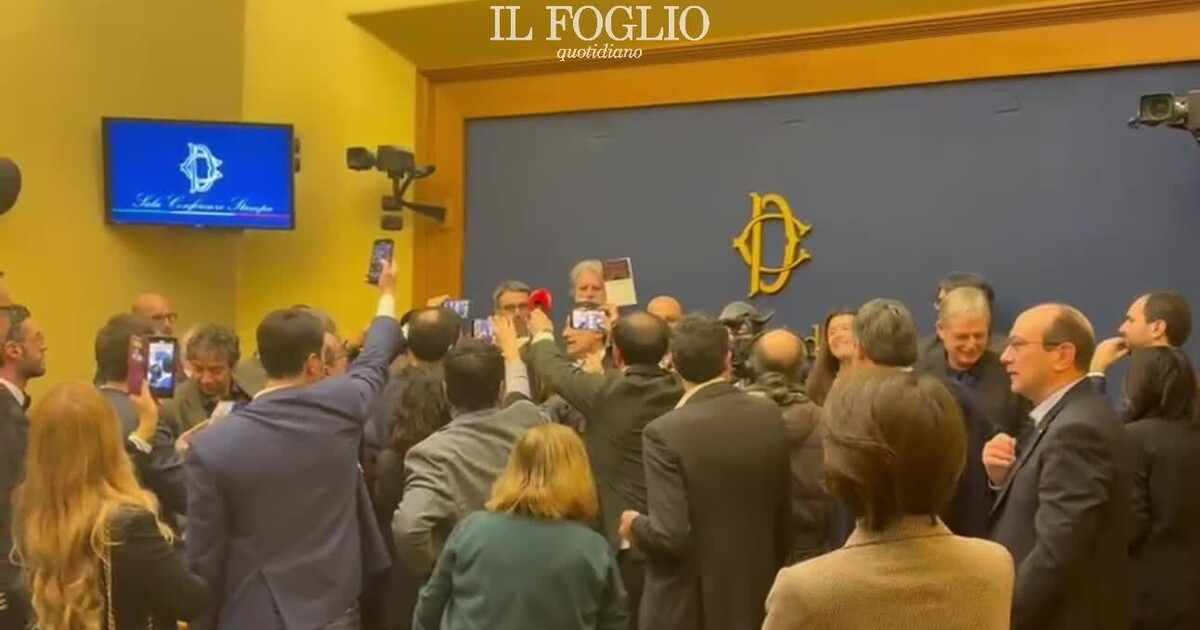 Caos nella sala stampa della Camera. Come anticipato dal Foglio, diversi parlamentari di di Pd, M5s e Avs – a pochi minuti dall'inizio dell'evento di lancio della raccolta firme per la proposta di legge di iniziativa popolare 'Remigrazione e riconquista' – hanno occupato l'aula, cantando Bella ciao e Fischia il vento, per poi improvvisare una conferenza stampa, che ha visto anche un forte botta e risposta verbale tra Gilda Sportiello del M5S e Domenico Furgiuele, deputato leghista e organizzatore dell'evento. Con il parlamentare del Carroccio "circondato" e costretto a rispondere anche ad Angelo Bonelli (Avs) e Gianni Cuperlo (Pd), Riccardo Ricciardi (M5s). Tutti hanno richiamato "i valori della Costituzione antifascista". Il parapiglia è andato avanti per diversi minuti, fino a quando è arrivato l'annuncio: "Annullate per ordine pubblico tutte le conferenze stampa di oggi, così come deciso e confermato dalla Presidenza della Camera".