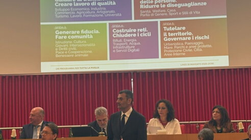 Se la slide può essere interpretata come un indizio, chissà che non sia anche un segnale non solo della cura per la semplificazione del messaggio politico di Decaro, ma anche delle eventuali mire extra pugliesi (la premiership del centrosinistra?) che qualcuno inquadra tra i progetti futuri del neo monarca barese.