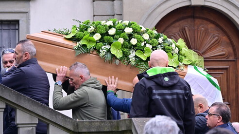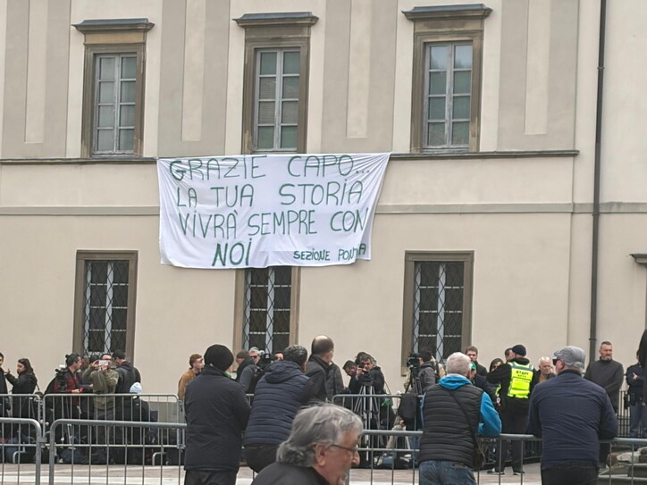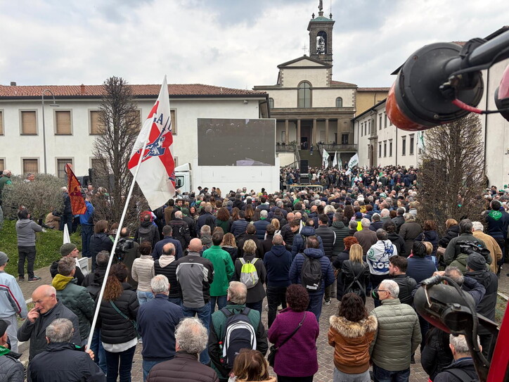 Il saluto al senatùr è il raduno di un mondo che non esiste più. Un funerale di paese con 400 posti a sede in abbazia. Tanti fazzolettoni verdi. Mentre il vicepremier e segretario (in camicia verde) viene contestato: "Vergogna". C'è anche Dell'Utri. I cori: "Secessione! Roma ladrona la Lega non perdona". Poi Giorgetti li zittisce. Scene dal funerale a Pontida