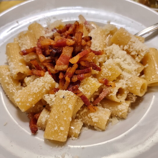 Mangio la gricia all’Osteria Chiana e col proprietario Federico Castelnuovo ci scopriamo comuni cultori dei Genesis anzi di Peter Gabriel anzi di “The Musical Box”. Chi vuol sapere a quale meraviglia mi riferisca vada a vedersi su YouTube il video della televisione belga, anno 1972, che per motivi anagrafici e geografici sia io sia Castelnuovo abbiamo conosciuto solo grazie a internet, dunque la nostalgia non c’entra: la venerazione per tale brano, capace di sopravvivere all’estinzione del suo contesto, è da considerarsi puramente estetica.