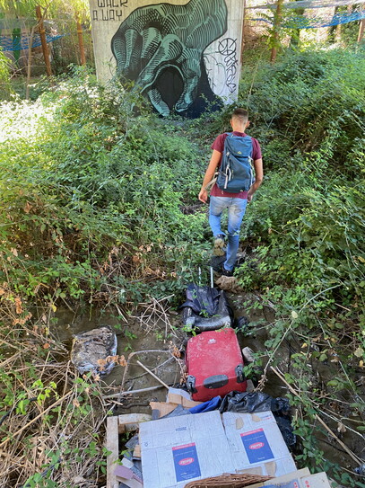 Per attraversare il guado creato dall’acqua che si accumula a valle quando piove, gli abitanti di questo campo nomadi illegale, ma non così in miniatura, avevano costruito anche un ponte fatto di valige. L’incendio è passato anche di qui prima di risalire la collina, sospinto dal vento che soffiava verso nord, lasciandola spoglia di alberi e radici. Adesso il terreno, un mix di sabbia e argilla, senza interventi di riforestazione potrebbe persino franare.