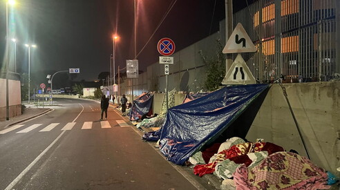 Sembrano gli indignados con le tende a Caracalla nel 2011, ma non lo sono. Sono gli “attendisti” dell’Ufficio immigrazione in via Politi: persone che aspettano senza sapere quando verrà concesso loro un turno per entrare. Man mano che la notte avanza, le file si allungano. Aspettano al freddo per ore o giorni, senza potersi lavare o riparare. Si dividono in due file: a destra per il rinnovo del permesso di soggiorno, a sinistra quella per la richiesta di asilo politico. Tutti con il passaporto in mano o in tasca.