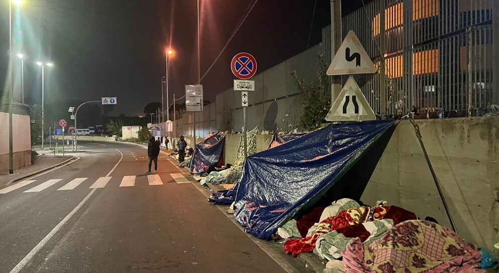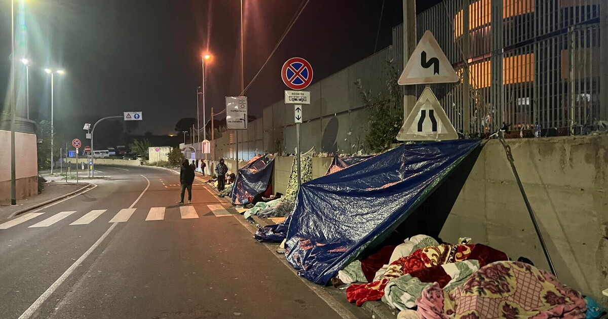 La fila per richiedere l’asilo ricorda una vera baraccopoli. Le decine di persone rinchiuse nelle coperte si confondono tra i teloni usati come tetto e i cartoni come pavimento. Emerge dal suo bozzolo di stoffa Ali, forse stufo di essere disturbato dalle tante domande e dalle poche risposte. D’altronde lui dorme lì questa notte, meglio andare subito dritti al punto. “Sono qui in attesa da ieri alle 16. Forse domani entro”. Che fai nella vita? “Studio ingegneria dei trasporti in magistrale alla Sapienza”. Ma allora perché sei in fila per l’asilo? “Sono persiano e sono un’attivista contro il regime islamico, per il quale mio padre lavora. Mi hanno minacciato, mi hanno detto che sanno dove sono. Ora ho paura e voglio passare dal permesso per studenti all’asilo politico, devo tutelarmi”. Ali racconta che oggi ha visto una coppia di ucraini entrare. Erano nella sua stessa fila, quella di chi chiede l’asilo. Non sa per quanti giorni hanno aspettato.