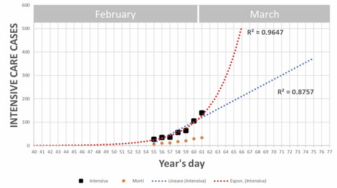 Era la previsione di quello che sarebbe successo nelle terapie intensive, fatta in un momento in cui persone che non hanno ancora reso conto delle proprie affermazioni parlavano di banali influenze, ciondoli, Milano non si ferma e tutto l'armamentario che abbiamo poi conosciuto. Il semplice rilevare un trend, usare un fitting esponenziale e trarne le ovvie conseguenze causò il risentimento di stuoli di economisti, modellisti, epidemiologi della domenica e dottori provvisti di finissimo senso clinico e critico verso i "topi di laboratorio", i quali si fecero un punto d'onore di reagire in maniera inconsulta.