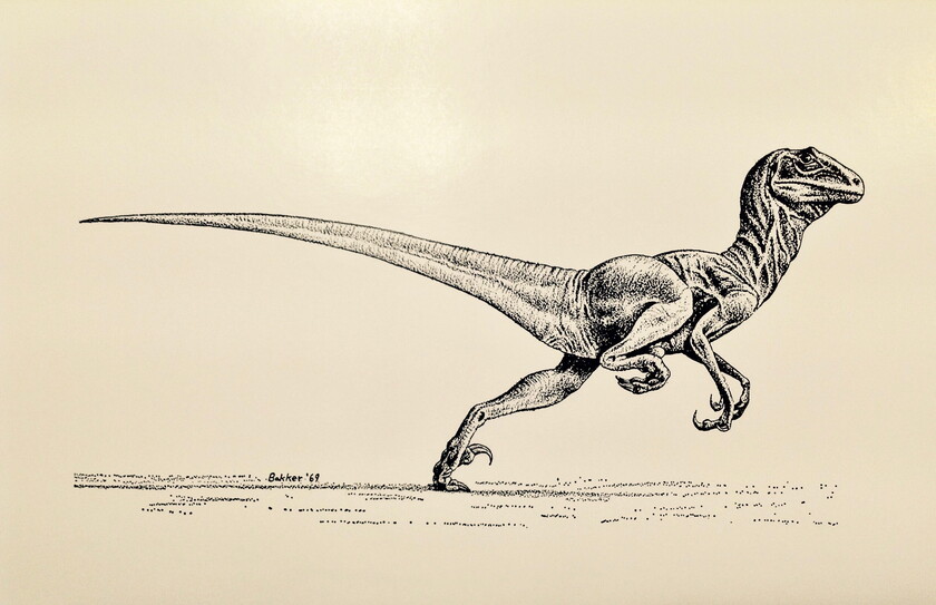 Con i raptor si arriva all’ultimo capitolo nella storia della ricostruzione dei dinosauri, quello che in qualche modo si sta svolgendo ancora oggi: il Rinascimento dei dinosauri. Fino agli anni Settanta del Novecento, l’aspetto di questi animali era cambiato moltissimo nelle descrizioni degli scienziati, conservando però qualcosa dei lucertoloni di Owen e Buckland: rettili probabilmente lenti, un po’ goffi, strano incrocio estetico fra coccodrilli e pachidermi. Insomma, quelli magnificamente ispirati dalla “Sagra della primavera” di Stravinskij nel film “Fantasia” della Disney. Poi qualcosa nelle teorie dei paleontologi inizia a cambiare. Lo scienziato americano Robert T. Bakker – un altro eccentrico: naturalista ma anche predicatore pentecostale, fautore della conciliazione fra religione ed evoluzionismo, sempre col cappello da cowboy – sostiene che i dinosauri erano rettili, sì, ma non potevano che essere animali a sangue caldo. Corpi troppo imponenti, stili di vita troppo attivi per essere sostenuti dal sangue freddo. Nel ‘69 Bakker – illustratore di talento – fa un disegno che diventa il manifesto del nuovo modo di guardare ai dinosauri. E’ il ritratto di Deinonychus, un appartenente al gruppo dei raptor. Il suo nome significa “artiglio terribile”. Un animale scattante, letale ma molto elegante. E intelligente. Finirà per essere il principale antagonista in “Jurassic Park” di Steven Spielberg.