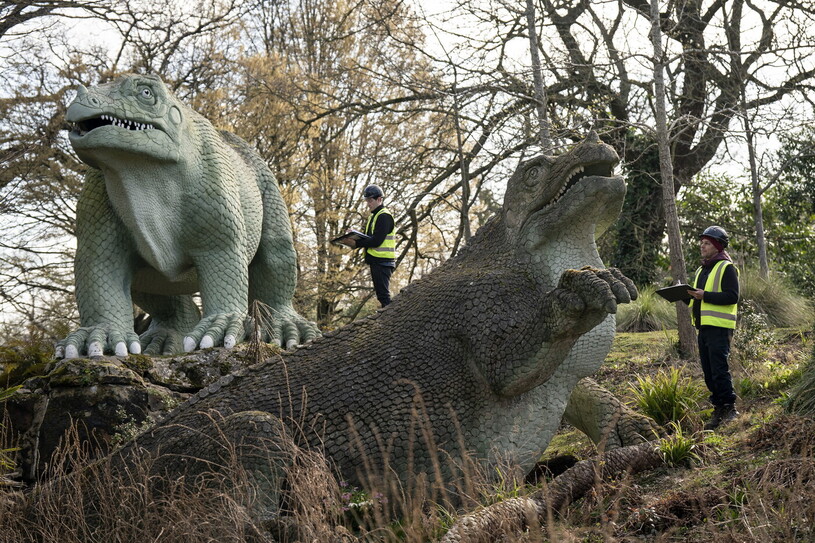 Megalosaurus non è l’unica creatura preistorica ospitata nel parco di Crystal Palace. Svelate al pubblico nel 1854, queste statue sono totalmente inaccurate per gli standard scientifici odierni, ma raccontano come il genio vittoriano riuscì a immaginare interi animali a partire da pochi frammenti ossei. La storia delle rappresentazioni naturalistiche è ricca di esempi analoghi, a partire dal rinoceronte di Albrecht Dürer – l’artista non aveva mai visto un simile animale dal vivo, ma le descrizioni dei viaggiatori gli ispirarono nel 1515 una xilografia che, nonostante le incongruenze, entrò nell’immaginario europeo del tempo. A proposito di rinoceronti: fra i dinosauri di Crystal Palace, disegnati e scolpiti da Benjamin Waterhouse Hawkins sotto la direzione di Richard Owen, spicca una coppia di rettili con un corno prominente in cima al muso. L’animale era stato battezzato Iguanodon, “dente di iguana” – ancora secondo un processo analogico tra fossili e specie viventi – e quel corno era oggetto di un equivoco clamoroso. Bisogna immaginare Owen che si trova davanti a un mucchio di ossa scoordinate, la maggior parte magari atta a ricostruire un altro lucertolone, ma che fare di questo pezzo di forma conica che non trova riscontro nelle iguane di oggi? Un rostro, uno sperone? L’opzione corno sul muso non dura a lungo, ci si rende presto conto che si tratta di un’unghia, un “pollice” osseo che serviva a Iguanodon, placido erbivoro, per difendersi dai predatori. Ma nel frattempo la frittata, cioè la statua, è fatta: nella sua pancia si tiene anche la cena di inaugurazione del parco. Un po’ come nel monumento equestre a Vittorio Emanuele II al Vittoriano, anni dopo.