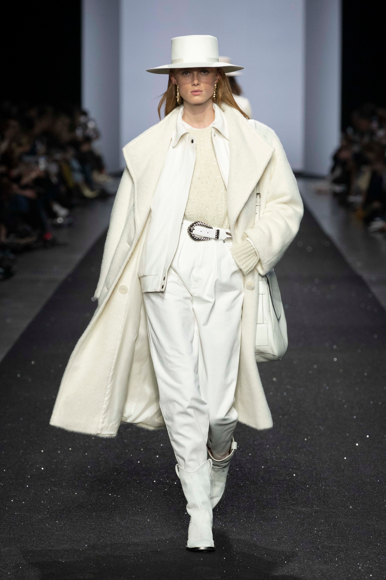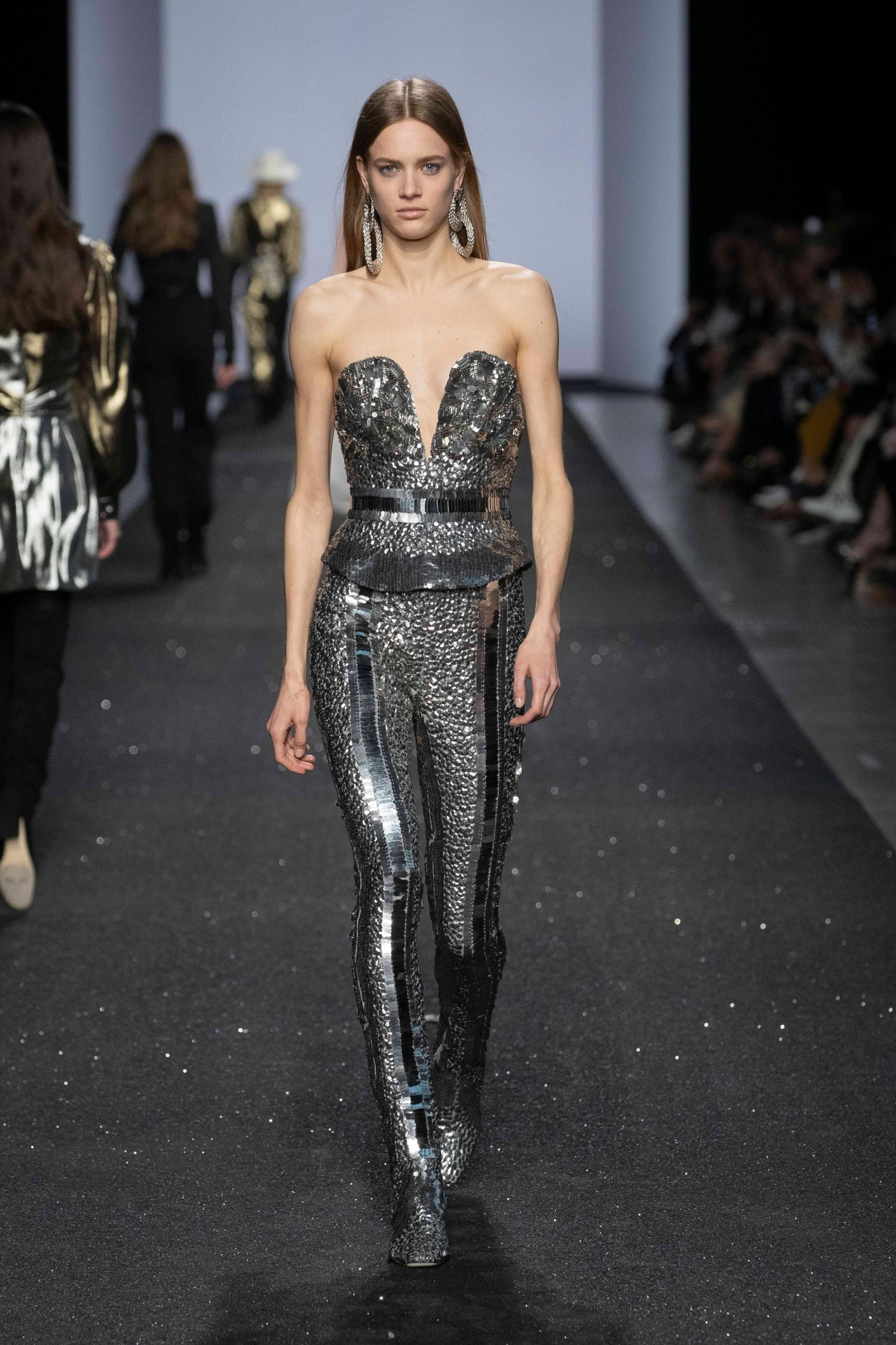 A bordo passerella, mentre sfilano le dive in lamé e in camicie di lurex a ruches immaginate dalla sorella Alberta (foto sopra e sotto), Massimo Ferretti, ceo del gruppo Aeffe quotato alla Borsa di Milano, aggrotta la fronte, preoccupatissimo: “Dobbiamo farci sentire in modo molto udibile, lanciare un messaggio chiaro, noi della moda italiana. Non c’è solo la congiuntura, e nemmeno il timore dei dazi di Trump: in questo momento, purtroppo, il nostro paese non è amato”. E questo si ripercuote sul business in modo fin troppo evidente.