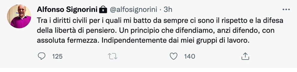 Signorini ha preso le distanze da questo comunicato con un tweet.