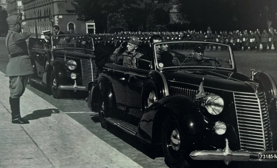 Altro modello di rappresentanza è la Fiat 2800\ torpedo, fornita alla Real Casa da Pinin Farina (che allora si scriveva staccato) in numero di 12 esemplari, tutti con nomi di cavalli delle predilette scuderie di Villa Ada oggi fatiscenti. Quella con numero di telaio 000276, targata Roma 73185, va in dotazione al re il 14 dicembre del 1939 e si chiama Alcinoo, come uno dei cavalli del sovrano. Non saprei dire se sia questa l’auto dell’ingloriosa fuga verso Pescara o una gemella; certo è che l’auto rimane al Quirinale anche quando viene proclamata la Repubblica e servirà con onore per le grandi occasioni i presidenti De Nicola, Einaudi e Gronchi, fino al 1961.
