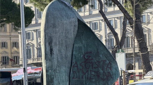 Scrivendo “Fascista di merda” (per altro scritta nella sostanza condivisibile, o anche su “fascismo merda” dobbiamo fare dei distinguo?), chiunque abbia commesso questa bambinata da liceo ha riconosciuto a quell’obbrobrio in bronzo dalle vaghe sembianze papali, che finora di monumentale aveva solo la sua statura colossale (non solo è orrendo, ma è pure alto sette metri!), con quella scritta, dicevo, hanno riconosciuto a quel catafalco osceno il nobile statuto di monumento. Il decoro urbano è una cosa seria, alla quale da borghese tengo moltissimo, ma se cominciano a violarlo in primis le amministrazioni pubbliche, ponendo su strada certe schifezze che al confronto l’ecomostro di Punta Perotti era la Sagrada Familia, mi sento di dire che un fesso che ci fa una scritta sopra ha solo fatto una fesseria, non esageriamo.