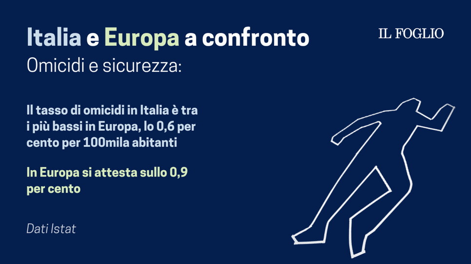 Il tasso di omicidi in Italia è tra i più bassi in Europa (0,6 rispetto a 0,9 per 100mila abitanti in Ue27). Tuttavia la sicurezza percepita segue traiettorie diverse. Così, nel 2024 la quota di persone di 14 anni e più che si sentono molto o abbastanza sicure camminando di notte da sole nella zona in cui vivono è pari al 56,7 per cento, un dato significativo ma in calo di 5,3 punti percentuali rispetto al 2023. Facendo il confronto con dieci anni fa, la quota di popolazione che, nella zona in cui abita, vede spesso elementi di degrado sociale o ambientale come persone che si drogano o prostitute in cerca di clienti, diminuisce del 2 per cento, anche se registra un +0,9 per cento rispetto al 2023, passando dal 6,8 al 7,7 per cento.