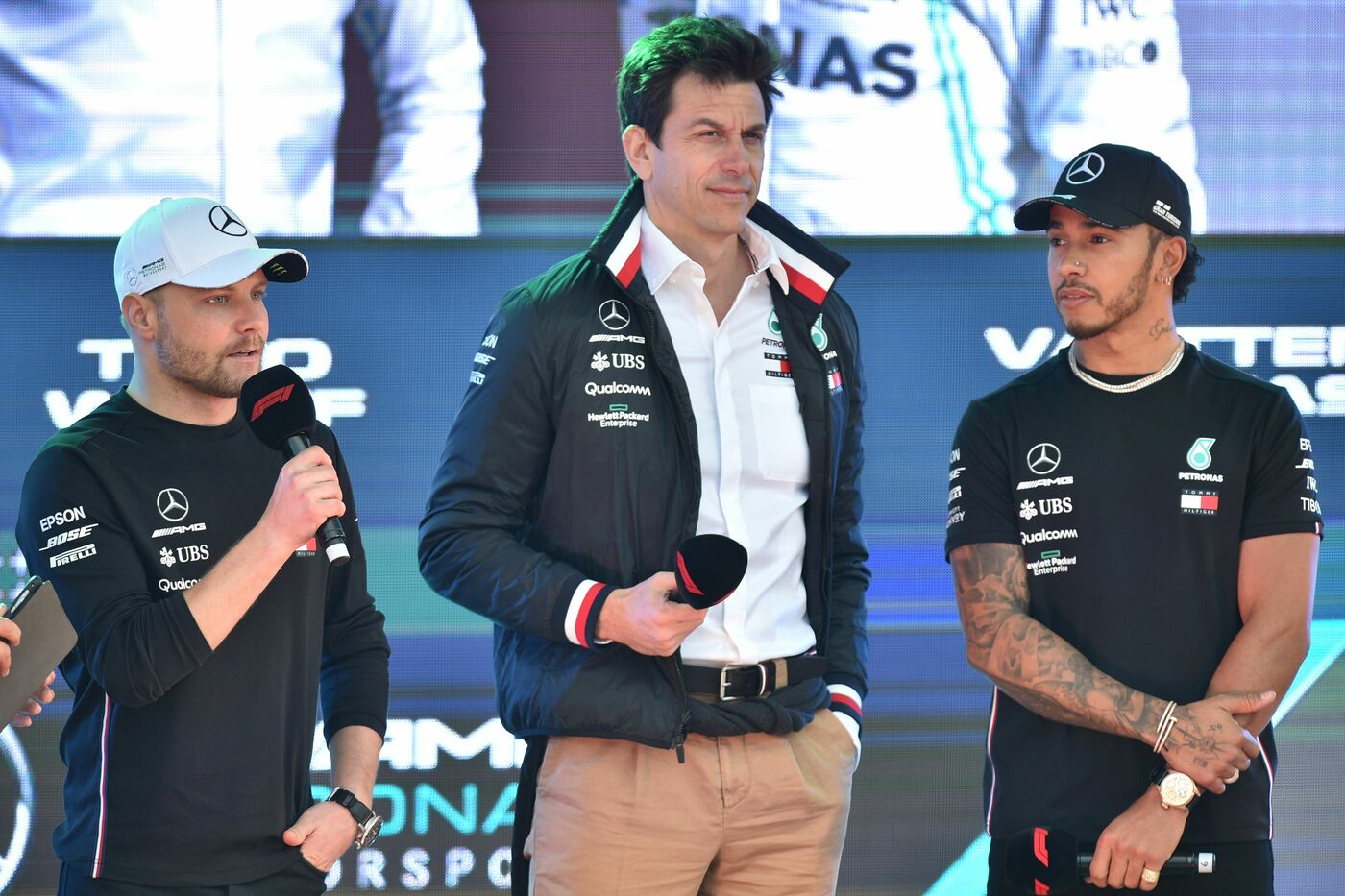Da sinistra Valtteri Bottas, Toto Wolff e Lewis Hamilton (foto LaPresse)