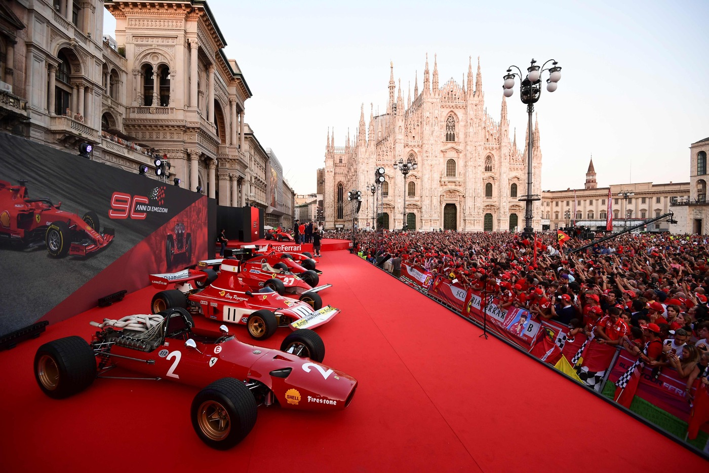La Ferrari gioca sempre in casa. Non c’è Gran Premio in giro per il mondo in cui la maggior parte dei tifosi non sventoli una bandiera della Scuderia che sta festeggiando i 90 anni di vita. Ma solo a Monza, nel Gran Premio d’Italia che domani spegnerà le candeline della sua novantesima edizione, c’è un grande cuore ad attenderla sotto al podio, lo stesso cuore che l’altro giorno ha colorato Piazza del Duomo a Milano.