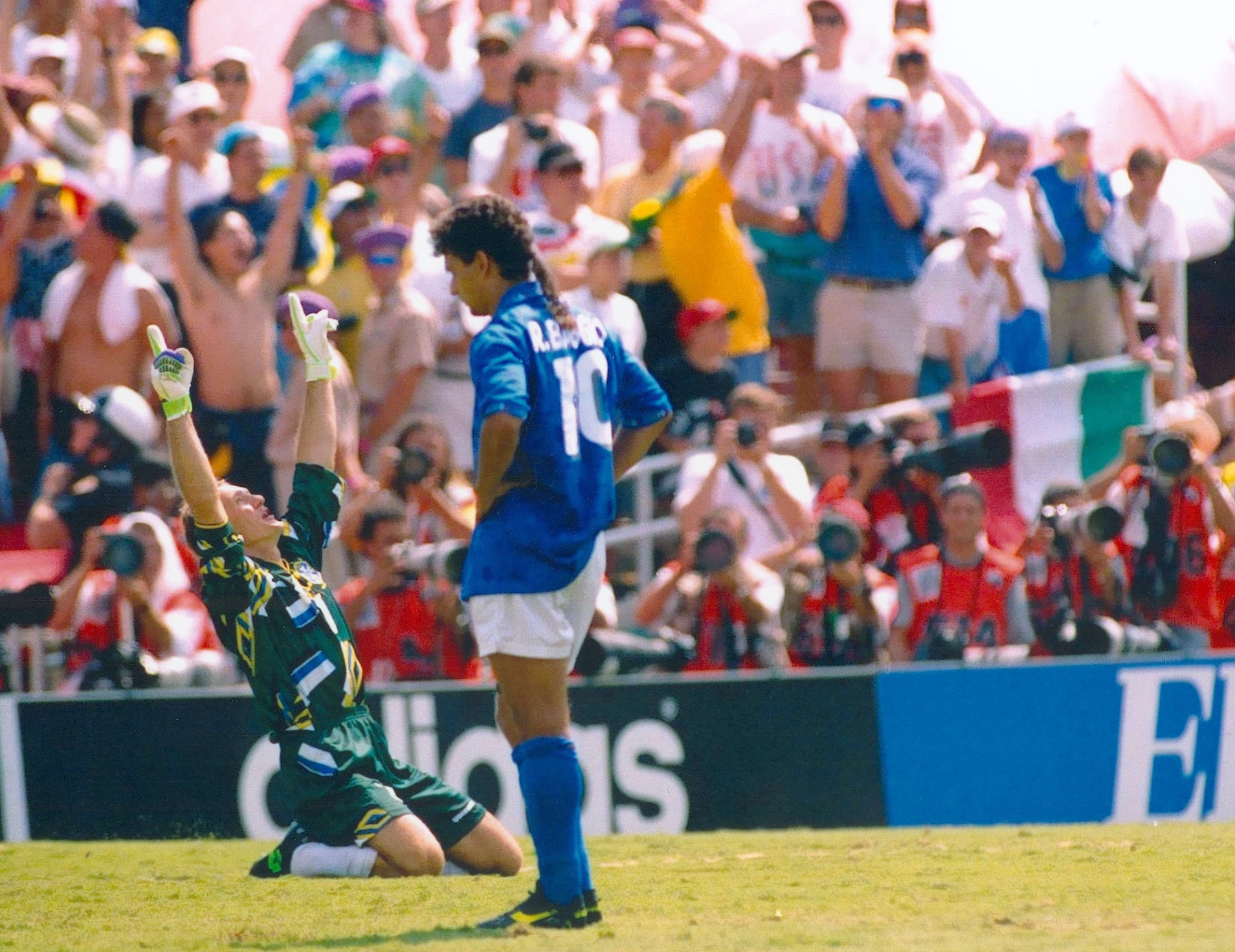 Roberto Baggio fallisce il rigore decisivo nella finale dei mondiali 94 contro il Brasile, a Pasadena, Stati Uniti (foto LaPresse)