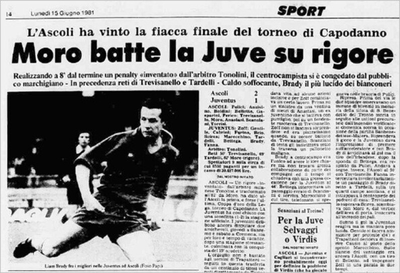 Adelio Moro, il capitano dell'Ascoli, che realizzò il rigore decisivo in finale contro la Juventus
