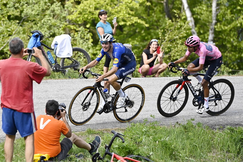 Tra l'inglese e quel colore c'è però ancora in mezzo Damiano Caruso e il suo incedere resistente, animato da un ardore cheto e consapevole che spesso a piccoli passi si va più lontano che a mettersi a correre. Il siciliano controlla, si guarda attorno, avanza silenzioso tra gli altrui clamori. Non alza la voce, non cerca la ribalta, costruisce pazientemente il suo proscenio. Ora distanziato di due minuti e mezzo da quello rosa.
