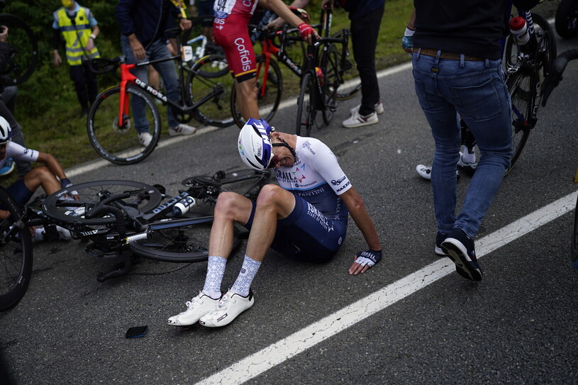 L’idiozia non è però inesorabile. È semplicemente idiozia. A essere inesorabile invece è quanto accaduto qualche decina di chilometri dopo, ossia la solita caduta da primi giorni di Tour. Strada in leggera discesa, velocità alta, distrazione, patapum. A uscire ammaccati in tanti, tra loro Chris Froome, venuto in Francia senza l’assillo della classifica e ritrovatosi già dopo 198 chilometri con quasi un quarto d’ora sul groppone.