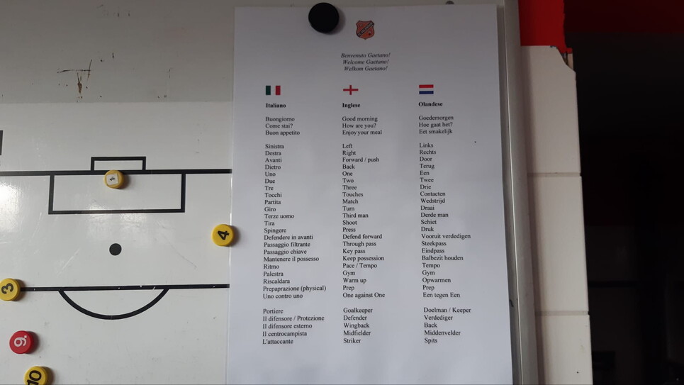 Per Filip volare a nord è stato facile. “Papà è sempre la prima persona con cui parlo: mi spiegò che era la scelta giusta. Poi mi aiuta anche da Belgrado, dove allena. Mio fratello è rimasto a giocare a Milano e la mamma si divide fra noi tre: siamo molto uniti e abituati a viaggiare”. Ma per Gaetano Oristanio, da Vallo della Lucania, era tutt’altra musica. “Very Italian”, di nuovo van Leeuwen, senza bisogno di traduzione. “Protetto dalla famiglia, zero inglese: per lui già Milano era un abisso culturale, figuriamoci l’Olanda. Ci sono volute settimane per convincerlo, anche grazie all’Inter e al feedback di Mulattieri. Ma sapete quante trattative fanno saltare le mamme dei calciatori?”. C’è del vero in certi stereotipi. “E vanno superati con pazienza”. Il dirigente si alza e ci accompagna negli spogliatoi: “Vedete?”. Appeso al muro, vicino alla lavagnetta, c’è un piccolo glossario calcistico italiano-inglese-olandese. Con tanto di Welkom Gaetano: “È il nostro modo per aiutarlo, oltre a un insegnante privato. Questo ragazzo ha una classe cristallina da liberare: deve ambientarsi, strutturarsi fisicamente ma poi non sorprendetevi se fra un paio di mesi esplode. Sono rari, esterni così creativi a 19 anni. E con la fame degli italiani”.