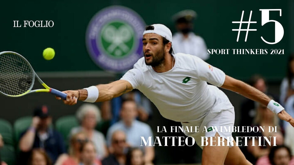 5) Matteo Berrettini in finale a Wimbledon, momento sportivo inedito, Italia. Perché, nel 2019, chiedeva a Federer “Quanto devo per la lezione?” e due anni dopo ha dato il via alla più indimenticabile estate dello sport italiano.