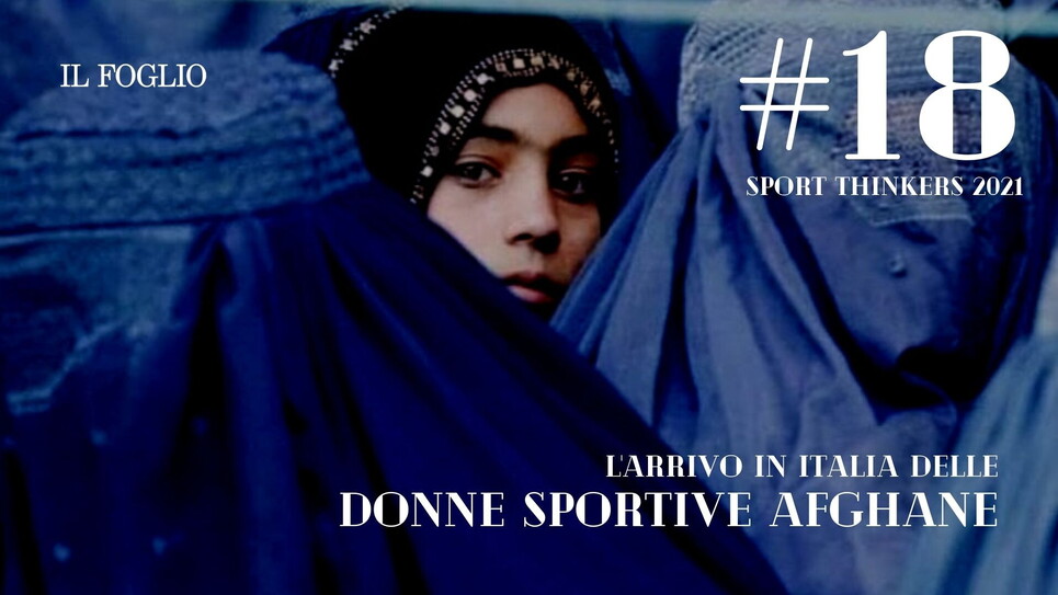 18) L’arrivo in Italia delle donne sportive afghane, calciatrici, cicliste, pallavoliste, esodo sportivo e di vita, Afghanistan-Italia. Per il coraggio di aver affrontato, a rischio della propria vita, l’inferno di Abbey Gate all’aeroporto di Kabul o il superamento di confini di terra e avercela fatta, essere arrivate nel nostro Paese, finalmente libere di potersi scrollare di dosso quella “colpa”, agli occhi della follia talebana, dell’aver voluto fare sport essendo donne..