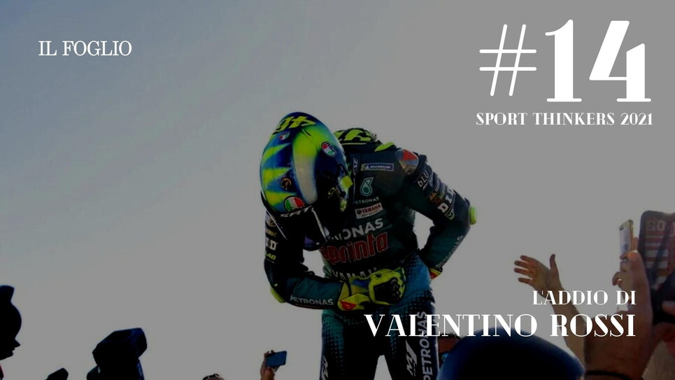 14) L’addio di Valentino Rossi, pensionamento sportivo e assunzione eroica, Italia. Perché questo lungo addio chiude l’era del Dottore, l’uomo che insieme ad Alberto Tomba ha definitivamente cambiato il modo di comunicare lo sport (anche se il colpo di genio resta la foto da umarell davanti a un cantiere, il giorno successivo).