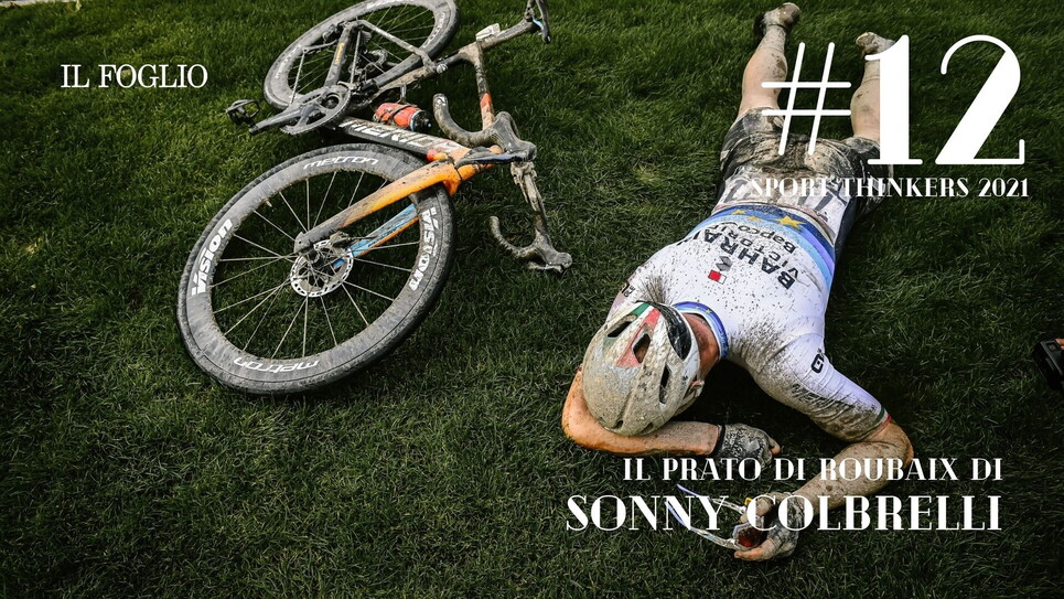 12) Sonny Colbrelli disteso sull’erba del velodromo di Roubaix, urlo catartico, Italia. Perché quella bicicletta sollevata riassume l’estate sportiva italiana: fatica, fango e gloria, urlando contro il cielo.